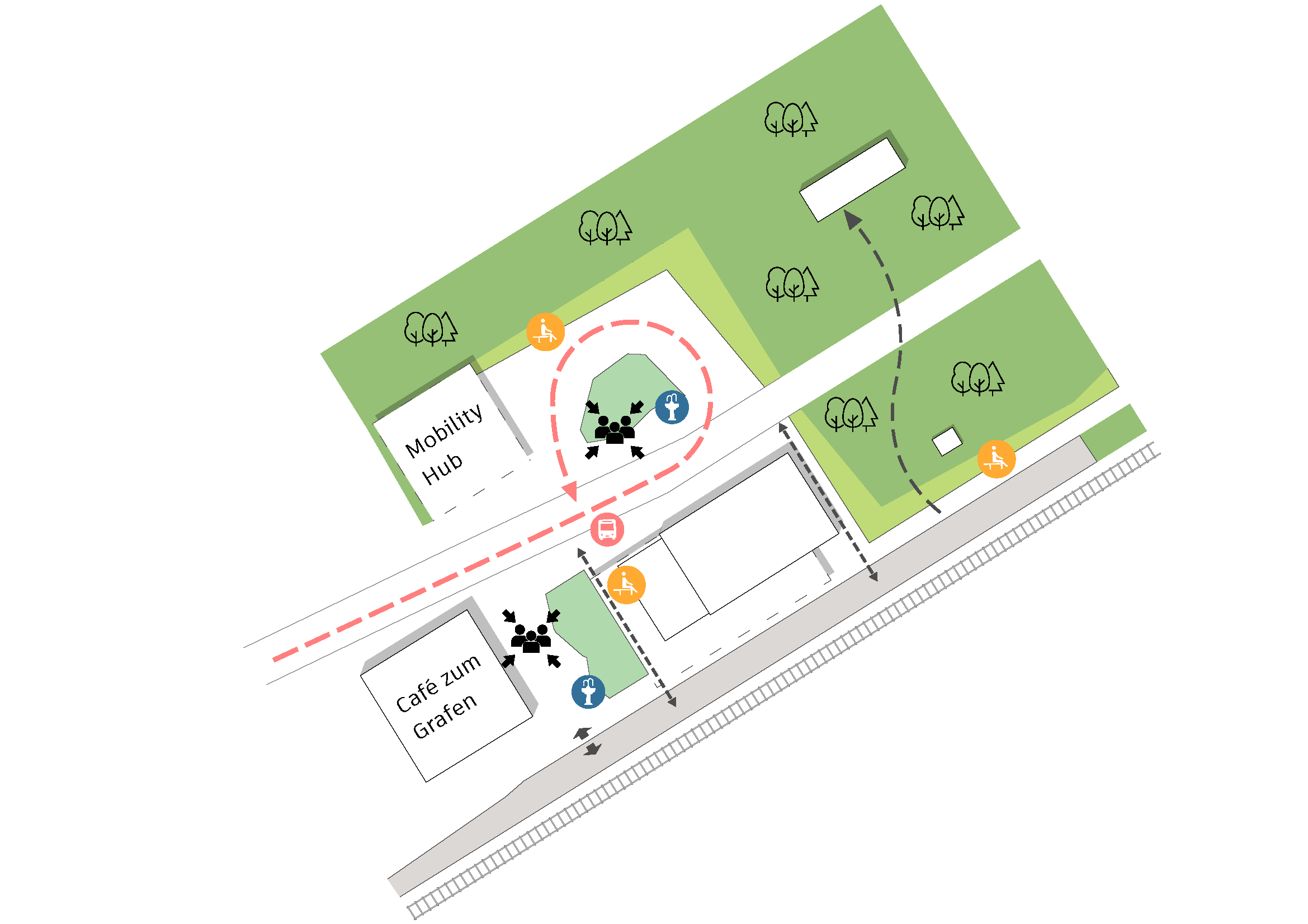 Insgesamt entsteht ein identitätsstarker, ökologisch und sozial ausgerichteter Freiraum, der das Bahnhofsareal neu strukturiert und nachhaltig aufwertet.