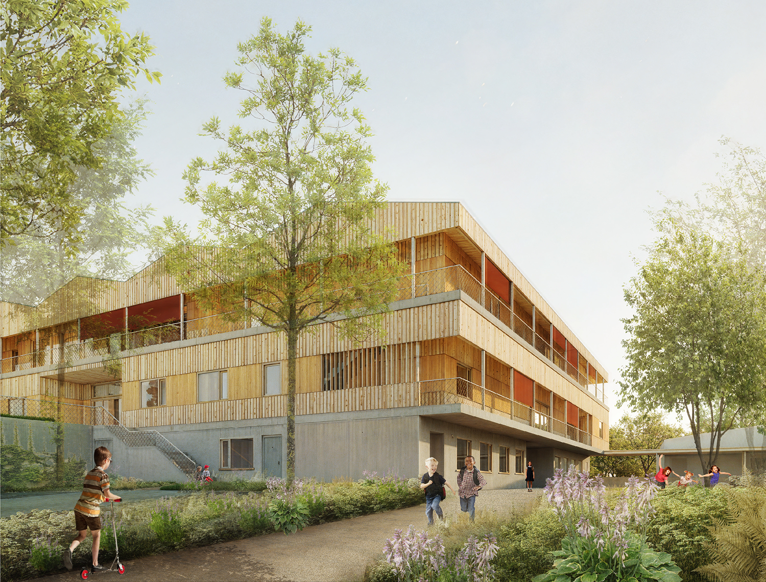 Die neue Grundschule in Neuburg am Inn interpretiert die landschaftliche und dörfliche Struktur gleichermaßen. Architektur und Freiraum bilden ein fein abgestimmtes Ensemble, das sich sensibel in die Topografie einfügt und funktional durchdachte Räume schafft. Der Schulcampus wird zu einem verbindenden Ort – zwischen Bildung und Bewegung, Rückzug und Begegnung, Dorf und Landschaft.